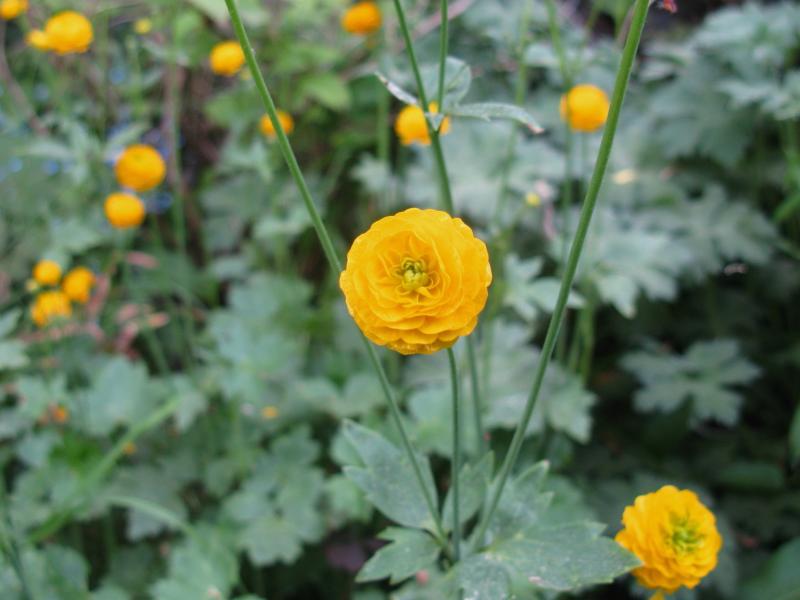 Und dieses kleine Schätzchen, das ich leider nicht schärfer und kontrastreicher abgelichtet bekomme, heißt wohl R. aconitifolius 'Pleniflorus' oder so... :-\