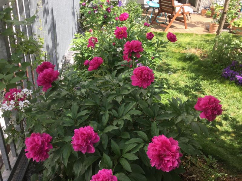 die fehlt mir noch, die Paeonia officinalis 'Rubra Plena'. Sie wird in Päonien Kreisen etwas abschätzig beäugt, ich selber finde sie großartig und liebte sie wegen der frühen Blütezeit und weil sie so lässig daher kommt ohne groß gestützt werden zu müssen.