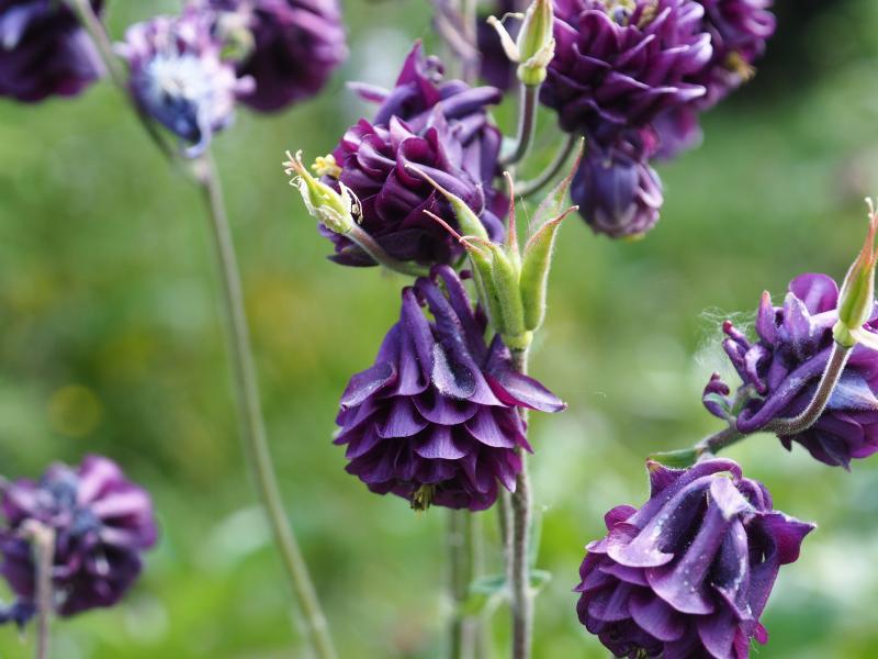 Eine ganz weiße Akelei fehlt mir auch noch, bisher haben sich bei mir neben hell- und kräftig rosafarbenen, blauen, lilafarbenen und fast schwarzen nur weiße mit einem ganz zart violetten Schleier eingefunden. Neben den "normalen" weit geöffneten zeigen einige Rüschen, aber so stark gefüllt wie bei pearl sind sie nicht.