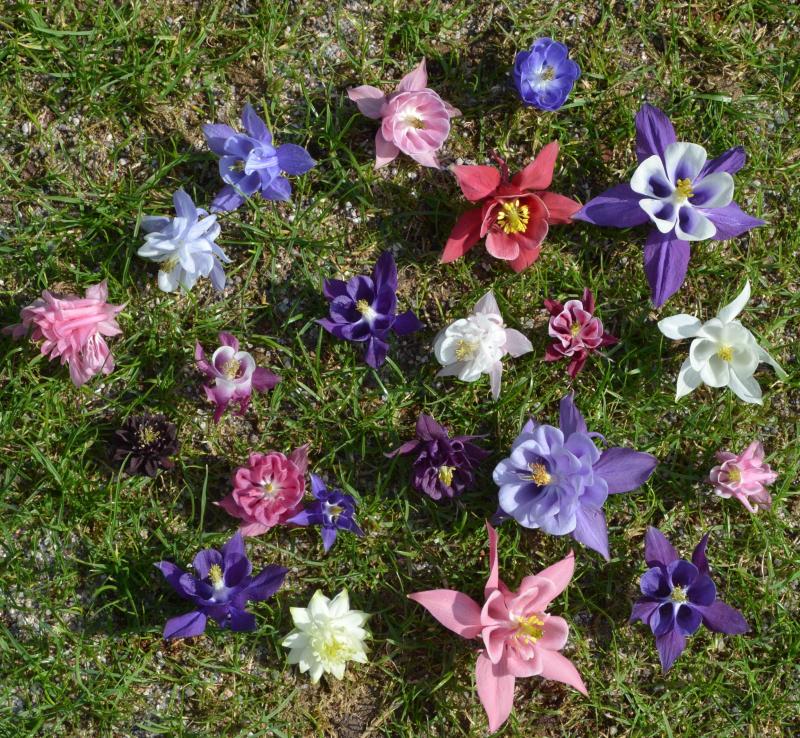im Wiesengarten sind die blauen und fast schwarzen dominant. Kann auch sein, dass das meine Auslese ist. Jedenfalls sind die selten in der Normalform, oft doppelt oder sternförmig blühend.
