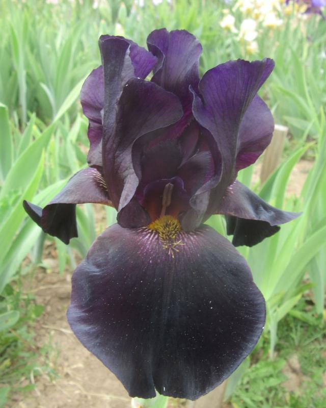 Bloom Color Description: Dark royal purple standards; black-purple falls, muted white rays on each side of beard