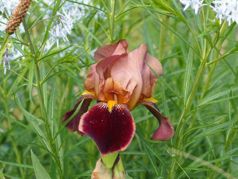 Zuerst eine namenlose TB, diese erhält man als "Café Chocolat" bei einem Kräutergärtner. Das dies nicht die richtige Bezeichnung ist, war mir klar. Hatte sie mitbestellt, weil ich wissen wollte ob sich hinter der dort ebenfalls erhältlichen Schokoladeniris nicht vielleicht die alte `Louvois´ verbirgt. Die blüht aber vorerst nicht. Typisch!