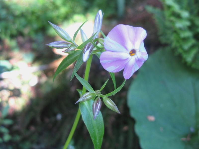 Mit den typischen P. Maculata Hybriden scheint er tatsächlich wenig zu tun haben. In Skandinavien wird er meist als Phlox carolina geführt. Mit der sehr frühen Blütezeit, seinen dünnen Stängeln und den flachen Blütenköpfen mag das auch hinkommen, Er erinnert ein wenig an 'Minnie Pearl', wird allerdings etwas höher.