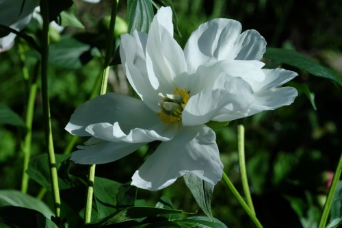 ...Absaat von Paeonia anomala. Ist gerade einmal gute 30 cm hoch, wodurch sie sehr zierlich und eigen wirkt, anemonenhaft.
