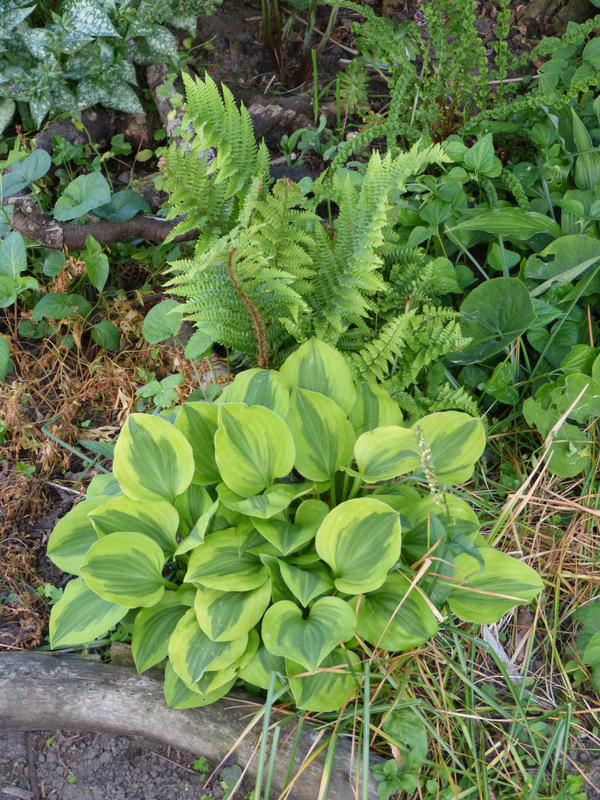 Die Hosta in den großen Kübeln am Gartenzaun haben den Winter gut überstanden.