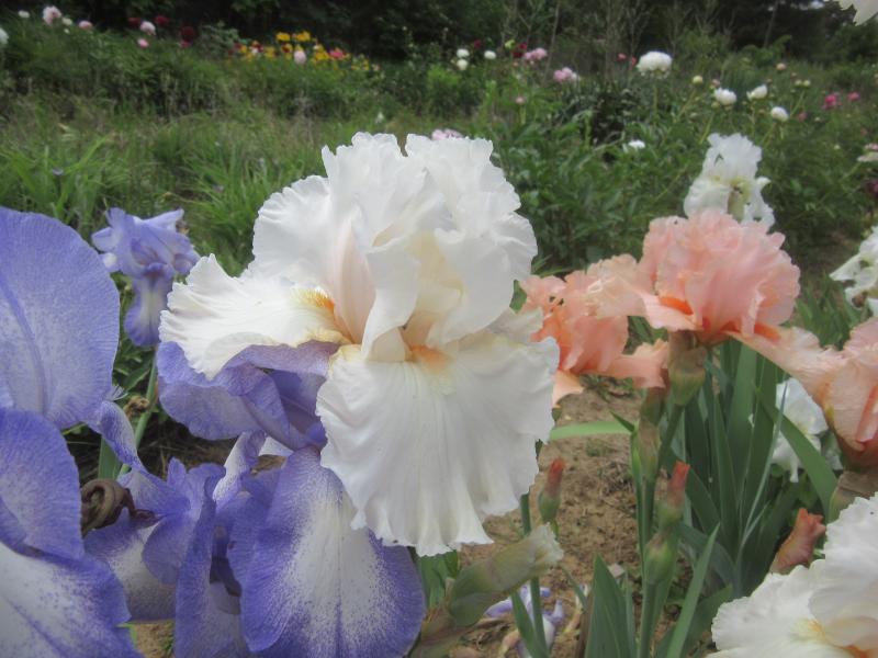TB `Blue Staccato´, heute Morgen bei den Blauen übergangen. Die Pflanzen sind jetzt in ihrem sechsten Jahr und schieben immer noch reichlich Stiele. Welche sich aber, das kritische Auge wird es im Hintergrund erkennen, zumeist nach dem Regen flachlegen.