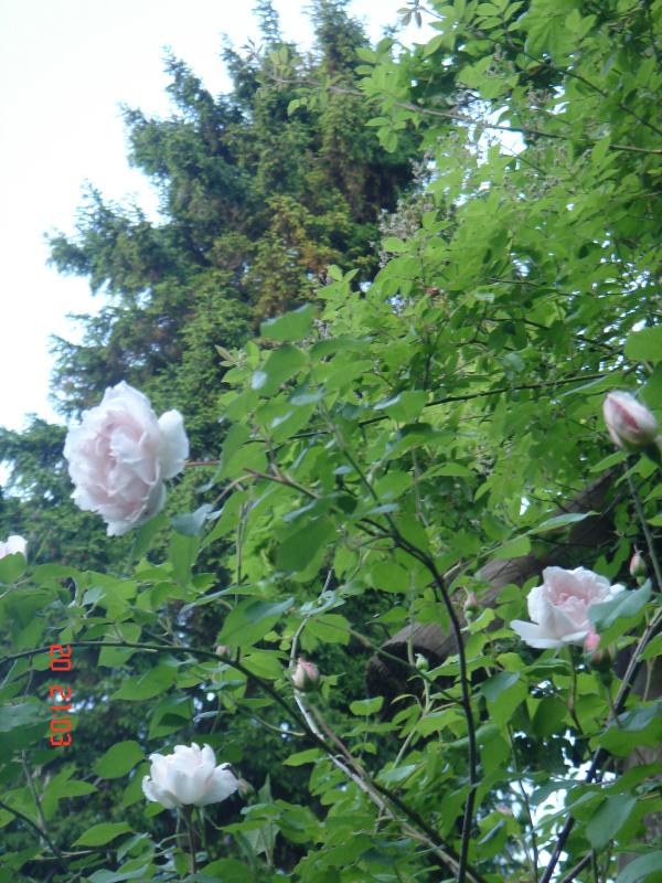 Eine Mme Alfred Carriere wurde hier ja schon gezeigt, unsere zeigt auch erste Blüten, und steht ( bei uns im Garten ) für den ersten Rosenduft des Jahres, Fliederduft ist in ein paar Tagen vorbei, Holunderduft ( und -blüte ) übernimmt.
