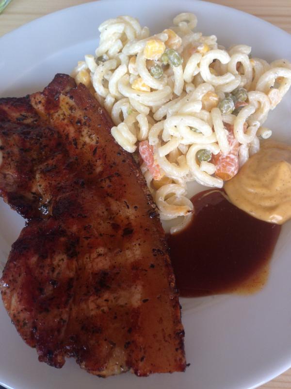 Freitag grillerei mit Nudelsalat, gestern hatten wir Besuch. Es gab flädle, Spargel, Schinken, holandaise.