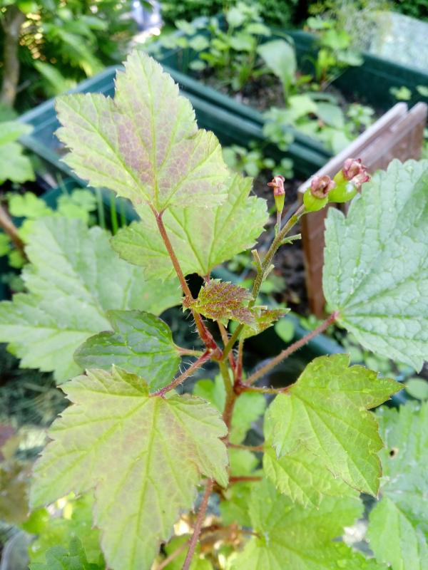 Die unbekannte rote Sorte, bildet ab Mutterstrauch nur sehr kurze Trauben aus. Am Stämmchen sind sie aber bedeutend länger, man sieht es auf dem Foto leider nicht so gut, da die langen Trauben teils verrieselt sind. Ist das Normal?