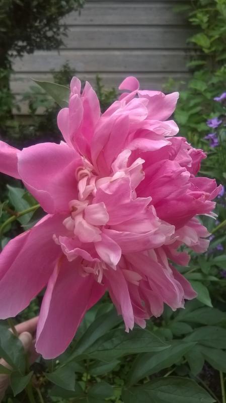 Diesen Sämling (?) habe ich hier im Garten unter einer eher niedrigen, rosa gefüllten vorgefunden und 8 Jahre auf die Blüte gewartet. :-\ Er wollte ja gerne schon früher blühen, aber verschossene Fußbälle, Gewitter und andere Widrigkeiten haben das jedesmal unterbunden. Einer wie gefühlt 1000 andere. Rosa, gefüllt, hoch (90 - 95 cm).