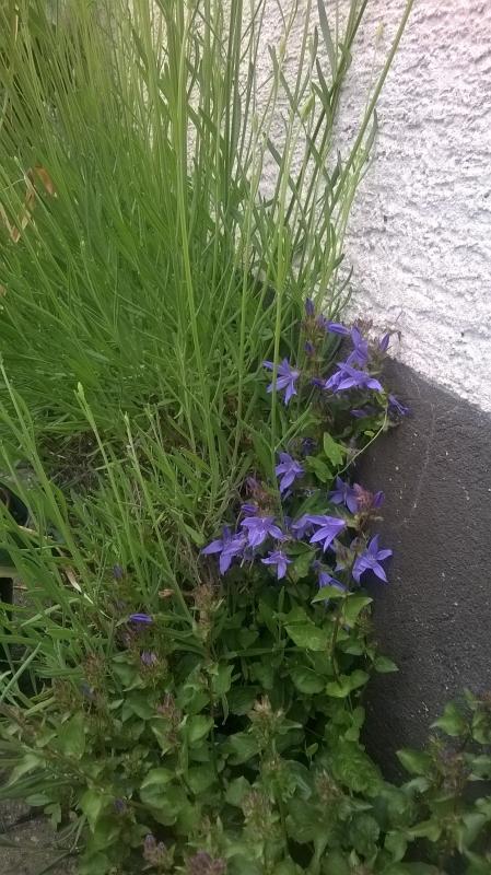Campanula poscharskyana 'Blauranke' - hat zusammen mit dem Lavendel die Aufgabe Convolvullus arvensis zu unterdrücken. Gelegentlich schafft die Ackerwinde noch einen Trieb durch, der wird dann gerupft. Nachgraben kann ich im Pflaster ja schlecht :-X ;)