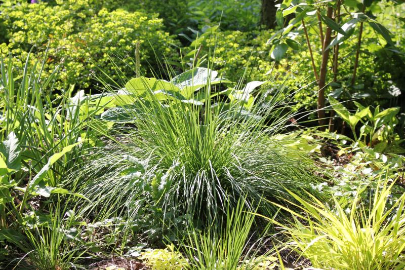 gefällt mir gut mit den Gräsern. Diese schwertartig vasenförmig hoch aufschießenden und sich ausbreitenden sind besonders gelungen. Welche sind das?