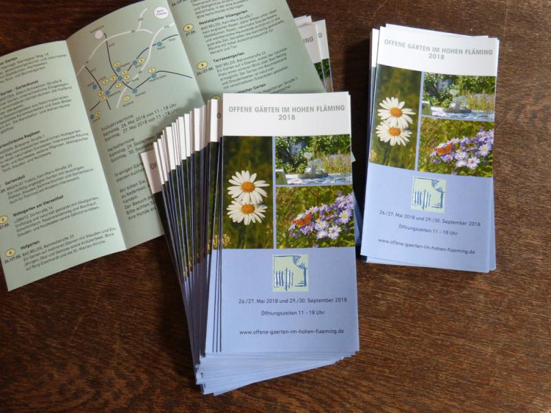Die nächsten Offenen Gärten im Hohen Fläming rücken in greifbare Nähe. Die Flyer für die neue Saison sind druckfrisch eingetroffen und auch die Homepage ist schon mit den aktuellen Terminen bestückt. :)