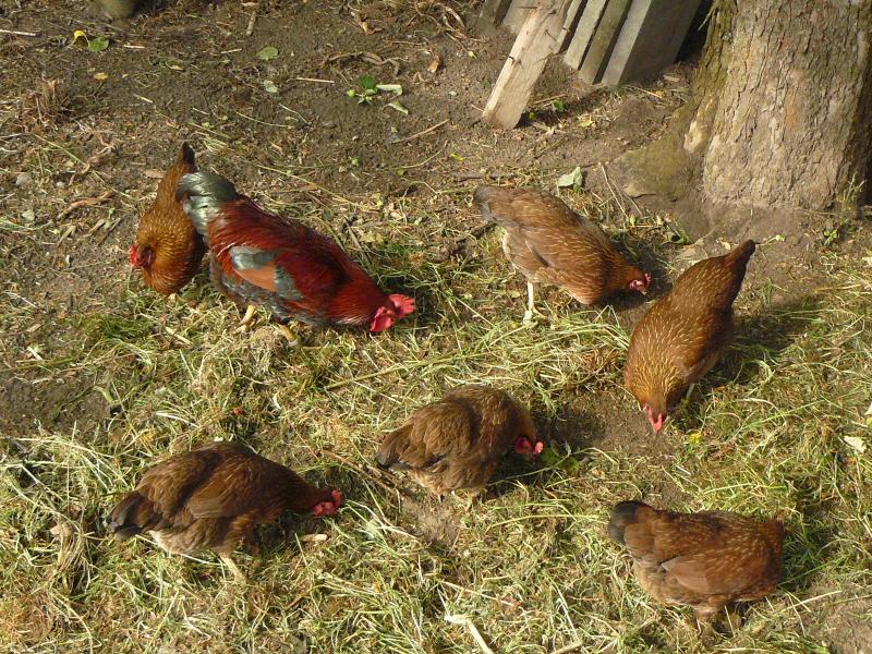 Und die Hühner sehen sehr gut aus. Sind das Welsumer?