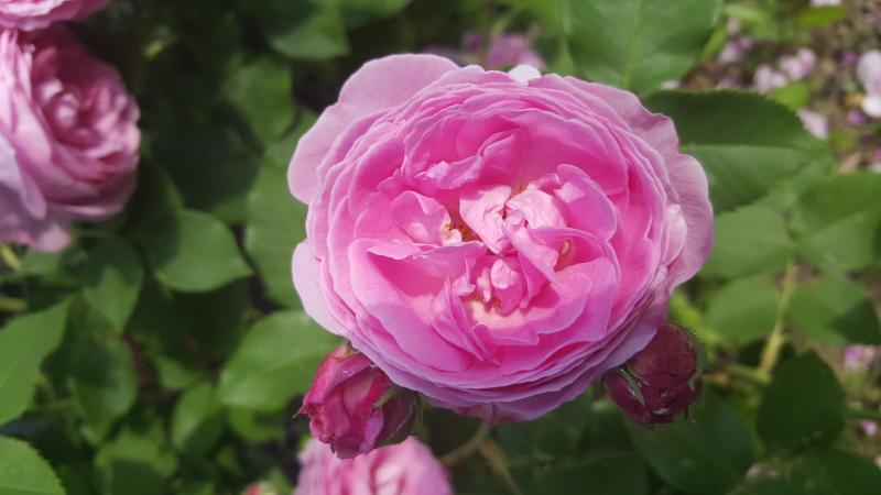 Félicité Parmentier steht an der Nordseite des hauses und blüht trotz viel Schatten dieses Jahr überreich.
