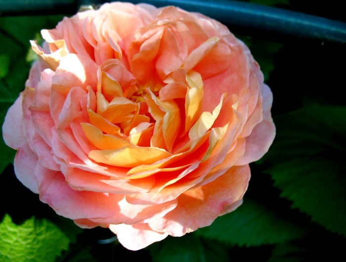 Gestern sind zwei meiner Rosen erblüht,Abraham Darby und Charles Austin.Hier ein Bild von Abe Darby