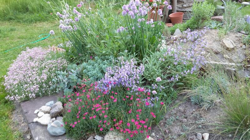 Das kieslose Kiesbeet beginnt jetzt, an einer Ecke richtig gut auszusehen.