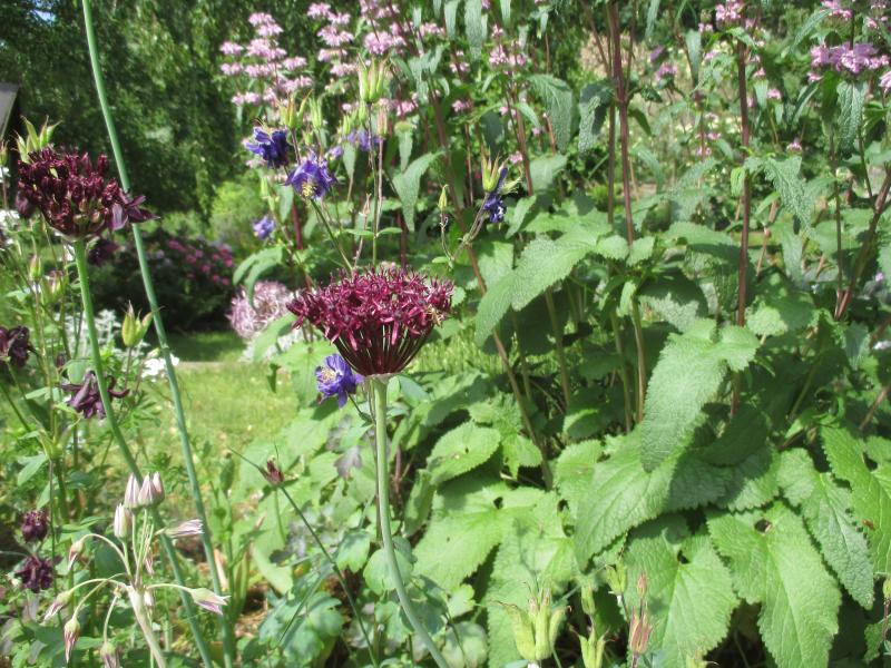 Du meinst Allium atropurpureum hier mit passender Akelei