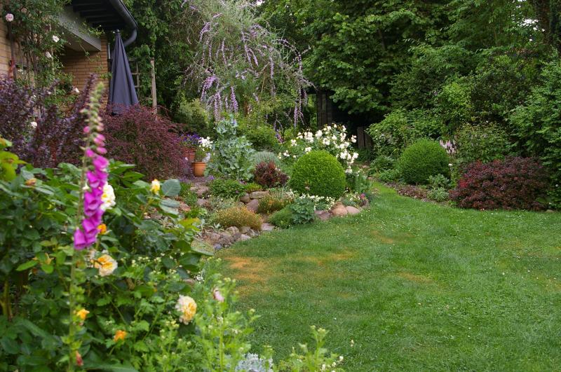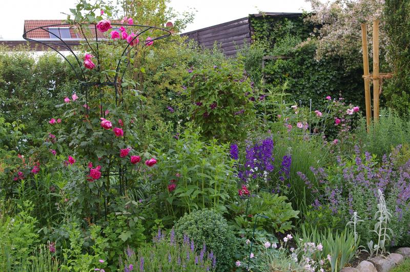 Hier nun ein paar Bilder aus einem Gartenteil, den ich seit einiger Zeit umgestalte. Er ist noch lange nicht fertig. Aber ein Teil der Beete sieht schon ganz nett aus.