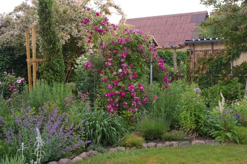 Hier nun ein paar Bilder aus einem Gartenteil, den ich seit einiger Zeit umgestalte. Er ist noch lange nicht fertig. Aber ein Teil der Beete sieht schon ganz nett aus.