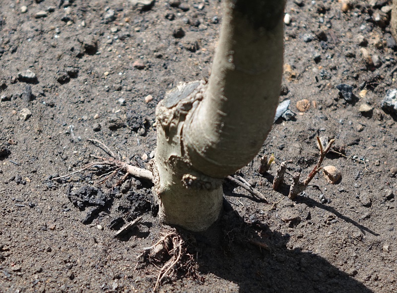 Bei der Goldparmäne bilden sich oberirdisch Wurzeln. Den Baum habe ich eigentlich recht tief eingepflanzt, wobei die Veredelungsstelle allg. kurz war und daher nur knapp über dem Boden ist. Kann das so bleiben?