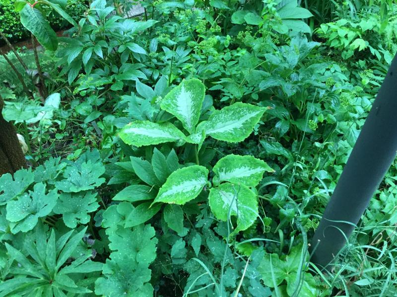 Hier Bau sich vor der Rodgersia gerade das nächste Monster auf... Arisaema speciosum, hat ein paar Jahre gedauert, bis es mehr als ein Blatt wurden. :D