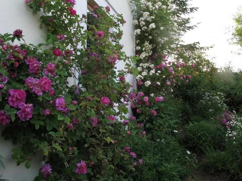 Und die Mutterrose der Francofourtana steht immer noch an einem alten Haus im Ort, meine bekam ich als kleinen Ausläufer. Eine Nachbarin meinte, "sowas" hätten sie vor der Renovierung des Hauses auch gehabt - in dieser armen, kältegebeutelten Gegend beschränkte man sich früher rosenmäßig bestenfalls auf die eine "Hausrose".