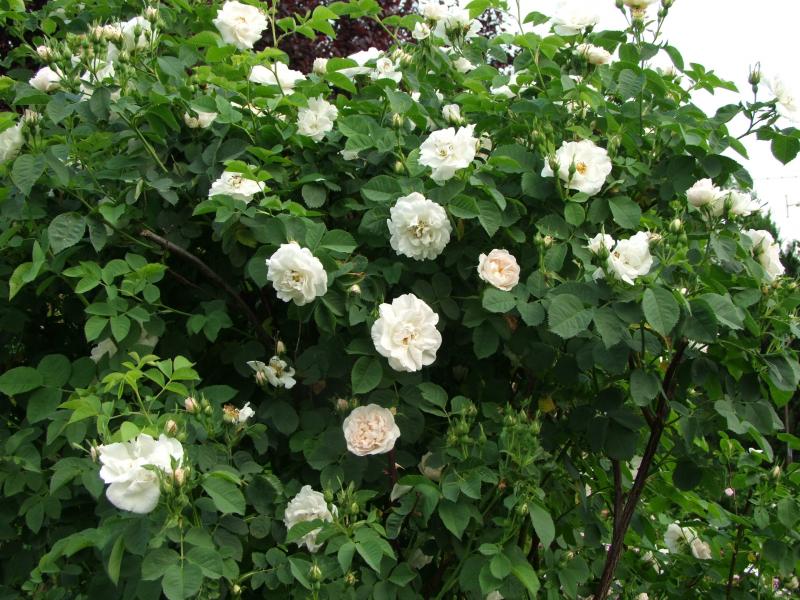Ich habe gerade kein absolutes Nahfoto von Princesse de Lamballe.So sieht der Strauch aus.Wenn die Blüten frisch ausgehen haben sie diesen cremeigen Ton.