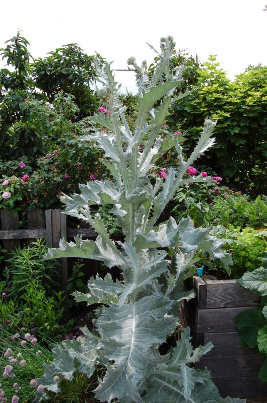 Die Eselsdistel verteilt sich mittlerweile im Garten, heuer neben dem Hochbeet :D