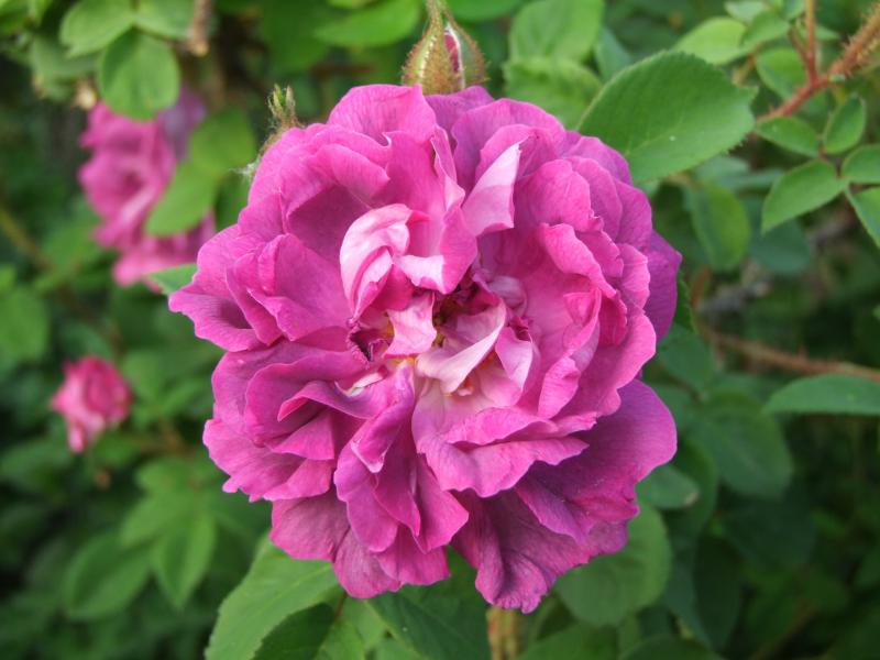 Von Arthur Young scheint noch eine andere Variante unterwegs zu sein.Meine sieht so aus.Blüten mittelgroß,teilweise auch klein.Die Blüte mit der Innenfältelung rechts im Bild ist typisch.Der Strauch ist etwa 1,80m hoch und steht ohne Stütze,allerding ist sie untenrum etwas spärlicher belaubt.Aber vielleicht könnte man das durch Schnitt noch optimieren.