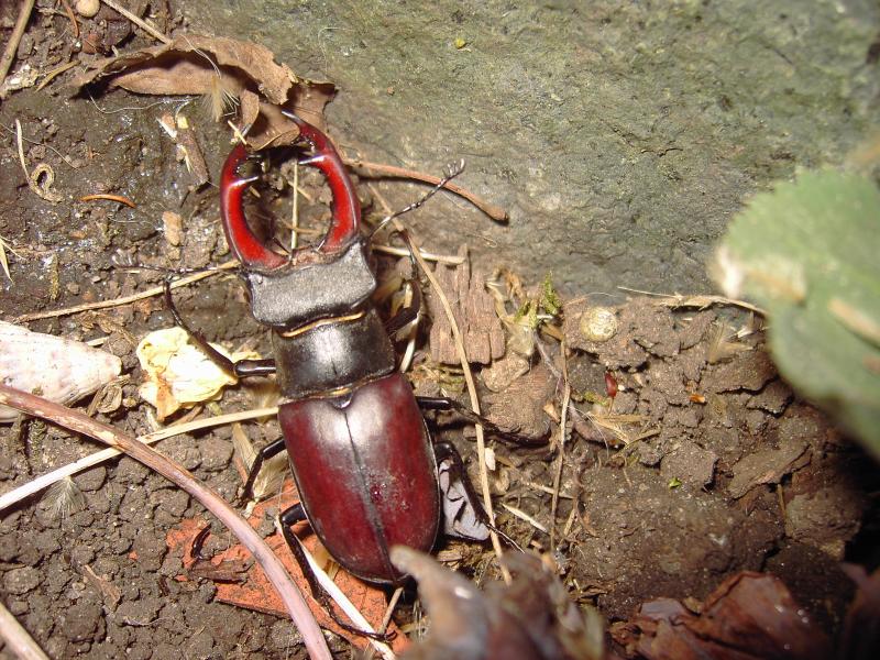 Hier prallte heute abend ein Hirschkäferfrauchen von der Hauswand ab und landete auf der Terrasse auf dem Rücken. :-\