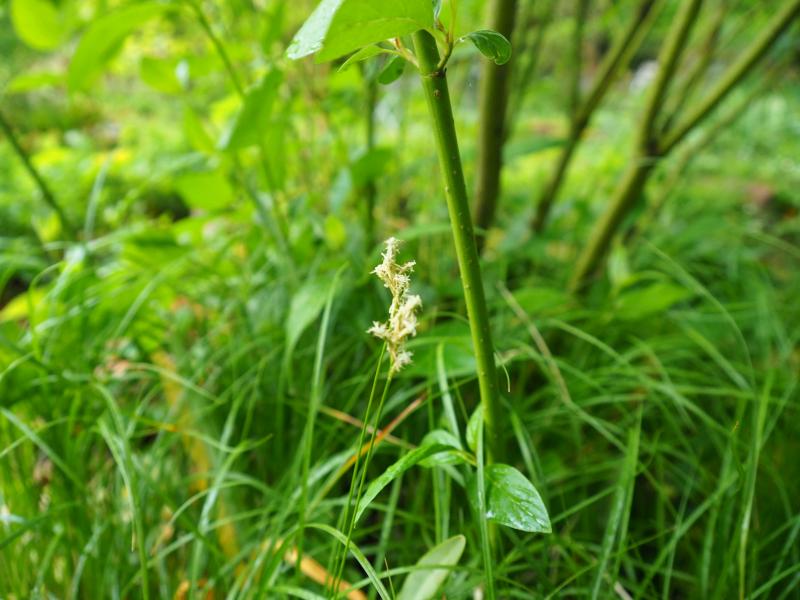 das Carex unter dem gelbgrünrindigen Cornus im Wiesengarten blüht. Keine Ahnung, was das ist, ich komme nicht weiter mit dem Bestimmen, vielleicht habt ihr eine Ahnung.