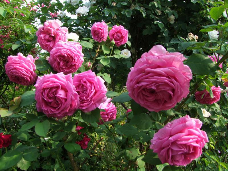 Dieses Jahr blühen bei Hitze und Dauertrockenheit besonders die Bourbonrosen und die Remontantrosen üppig.Die mögen das wohl. ;)