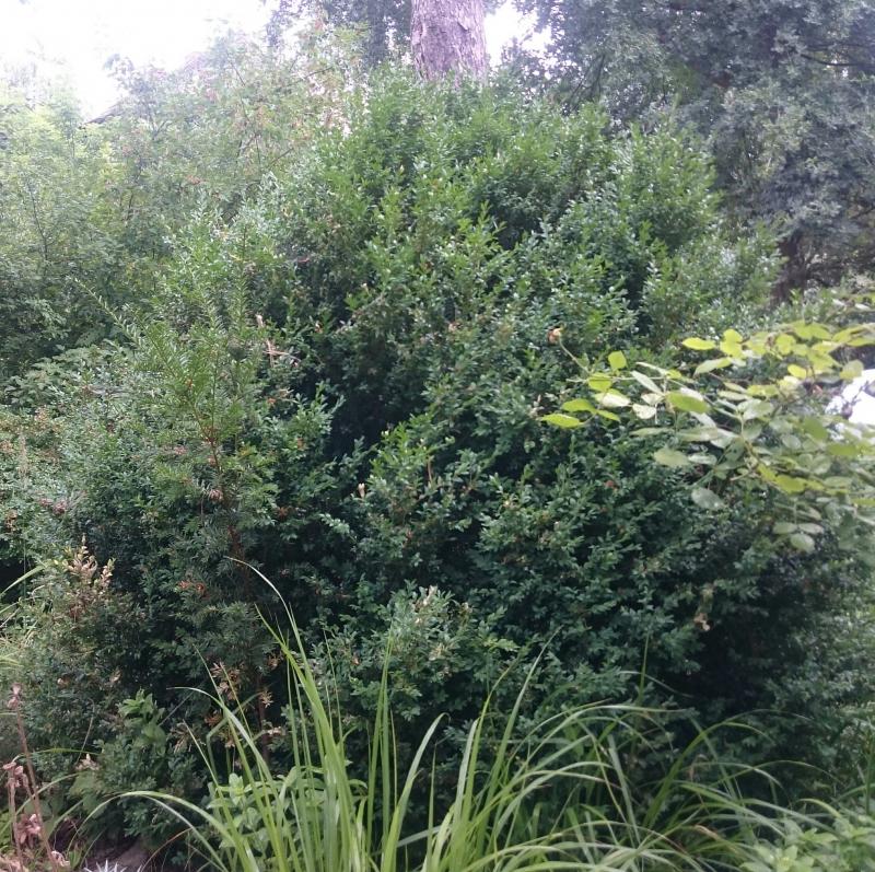 Irgendwas/ wer tut sich auch hier, da bin ich mir fast sicher. Die beiden grossen Buchse hatten im unteren Drittel Befall, das Laub dürr (wenige, kleine Stellen)und eigentlich wenig zerfressen, so sah das eigentlich immer aus erst noch nach dem Spritzen. Keine Raupe sichtbar.