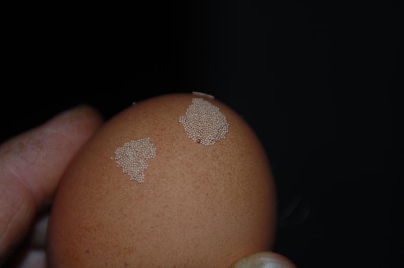 Weiß jmd was das ist ???? Waren wohl nur an diesem einem Ei dran, obwohl im Nest noch andere lagen. Gehen wie irgendwelche normalen Krümel ab, wenn man es versucht. Die Dinger sind, auch durch die Lupe gesehen, glatt und leicht oval.