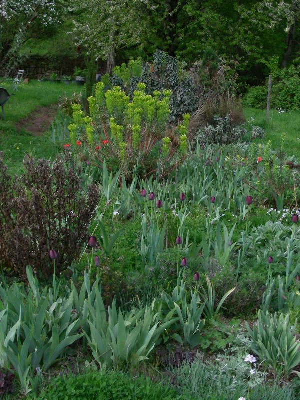 Immer müssen Bart-Iris auch in der Pflanzung integriert und harmonisch sein. Ein Bild vom 20. April 2009.