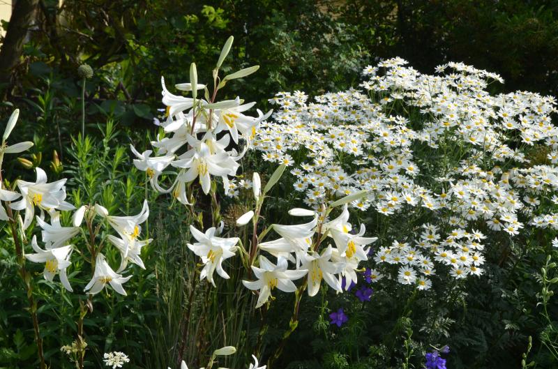 Teucrium scheint auch ganz gut durch die Hitze zu kommen, steht hier am sonnigsten Teil des Gartens.