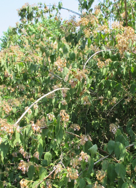 Selbst alteingewachsene Sträucher verdorren. Hier die Kolkwitzie: