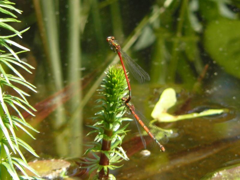 Hier sind die größeren dann bestimmt immer die Mosaikjungfern. Aber die kommen immer erst recht spät im Sommer...Diese kleinen dunkelroten Libellen und kleine blaue, haben sicher nicht solche riesigen Larven...