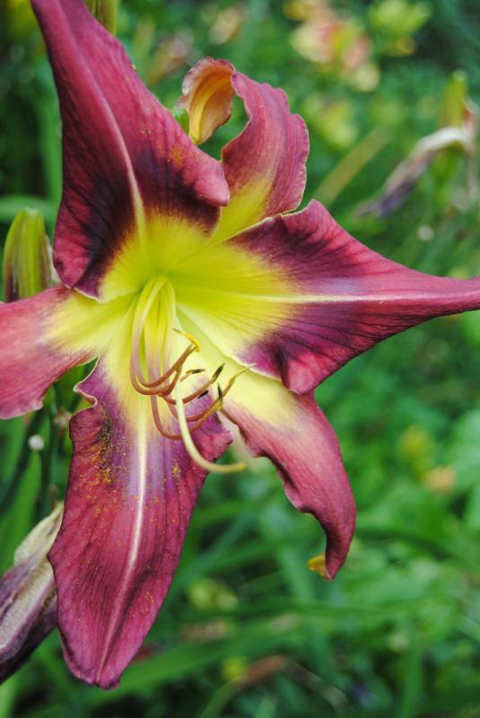 Hier Copper Cabana (Early Fragrance x Sandra Elizabeth) - praktisch, wenn man Rebloom-Blüten zum Kreuzen mit den ganz späten verwenden kann. Höhe 90 cm, Blütendurchmesser 18 cm, Blütezeit spät bis sehr spät, duftend (dank der Mama); farblich schwer zu beschreiben - ein leuchtendes Kupferbraun-Orange mit leichtem Auge/Band. Der Sämling tendiert zu gelben Farbeinsprengungen/geflammten Blütenblättern - eine Kreuzung mit den konstant geflammten Sorten hier ist geplant, um diese Musterung ans Saisonende zu transferieren (passende Pollen sind eingefroren). Ich kreuze allerdings nur mit Pflanzen, die ab 1. August hier noch blühen.