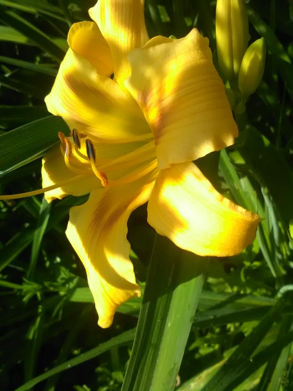 Gestern hat Golden Supernova (Final Touch x Suzy Cream Cheese) die ersten Knospen geöffnet - aktuell mein spätester Sämling. Beide Elternteile blühen sehr spät und sehr lange (Bud Builder bzw. Constant Rebloomer). Der Sämling hat einen Blütendurchmesser von ca. 18 cm und erreicht eine Höhe von ca. 90 cm. Erstaunlich finde ich, daß Final Touch die rosa Farbe bisher an keines ihrer Kinder mit diesem Cross vererbt hat (alle sind gelb oder apricot - einer zeigt die Blütenform von Final Touch und eine bitone Färbung in apricot-Tönen). Dieser hier zeichnet sich durch die strahlend goldgelbe Farbe und viele Knospen aus, aber auch dadurch, daß die Blüten immer wieder mal schön gelockt ausfallen.