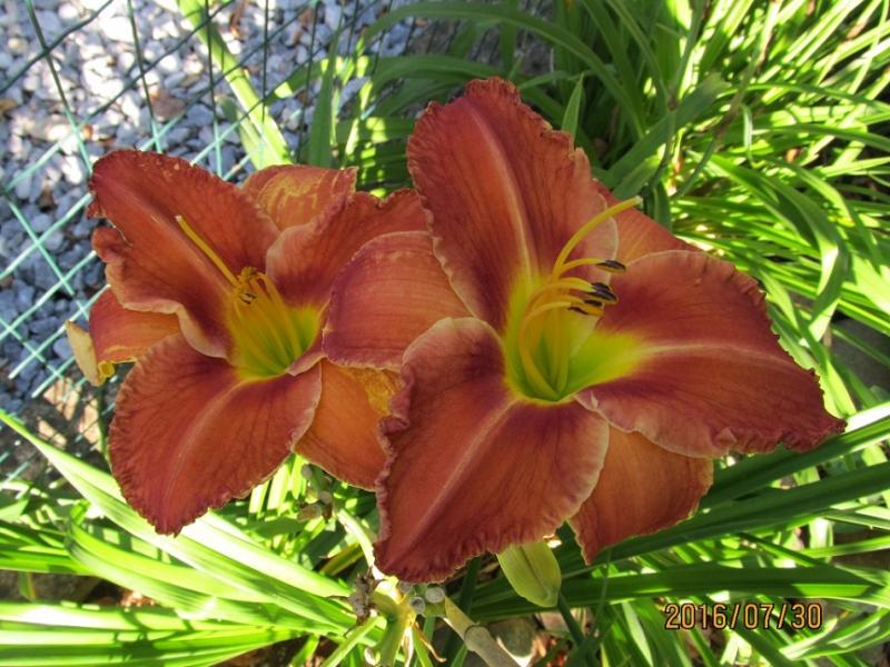Hier Copper Cabana (Early Fragrance x Sandra Elizabeth) - praktisch, wenn man Rebloom-Blüten zum Kreuzen mit den ganz späten verwenden kann. Höhe 90 cm, Blütendurchmesser 18 cm, Blütezeit spät bis sehr spät, duftend (dank der Mama); farblich schwer zu beschreiben - ein leuchtendes Kupferbraun-Orange mit leichtem Auge/Band. Der Sämling tendiert zu gelben Farbeinsprengungen/geflammten Blütenblättern - eine Kreuzung mit den konstant geflammten Sorten hier ist geplant, um diese Musterung ans Saisonende zu transferieren (passende Pollen sind eingefroren). Ich kreuze allerdings nur mit Pflanzen, die ab 1. August hier noch blühen.