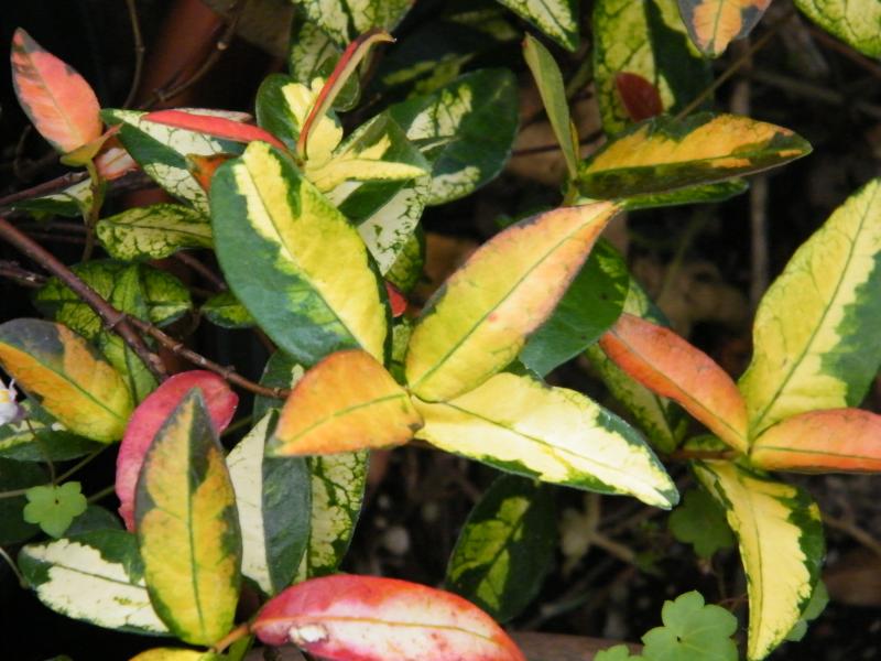 Trachelspermum asiaticum 'Ogon Nishiki' hat bei mir noch nie geblüht, wirkt aber durch die Laubfärbung.