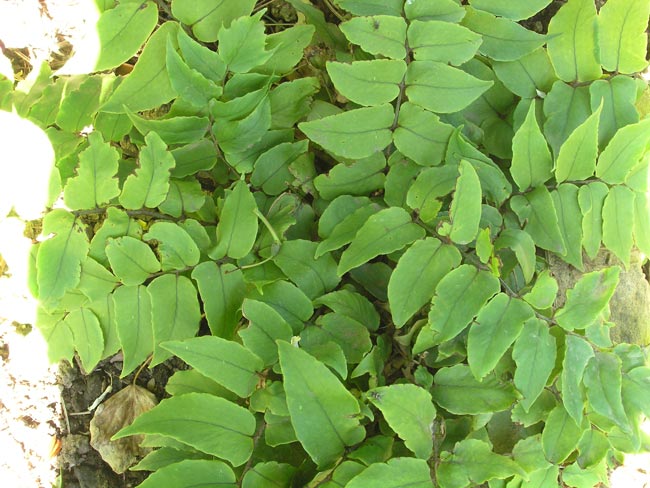 Die Cyrtomium auf Dirk Wiedersteins Seite haben Ähnlichkeit, aber meiner liegt flach am Boden, wächst gar nicht aufrecht. Aber vielleicht gibt es eine Cyrtomiumart, die dort nicht aufgeführt wird.