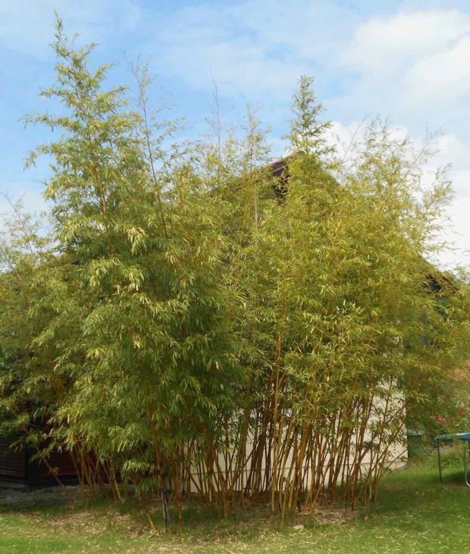 Ich habe bei einer Freundin vor sieben Jahren einen Phyllostachys vivax 'Aureocaulis' gesetzt. Vor der Pflanzung wurde durch eine GaLaBau-Firma eine 2 mm starke und 1 m hohe Rizomsperre eingebaut; die Pflanzfläche beträgt gut 30 Quadratmeter. Der Bambus hat inzwischen mit 12 m die Firsthöhe des Hauses erreicht: