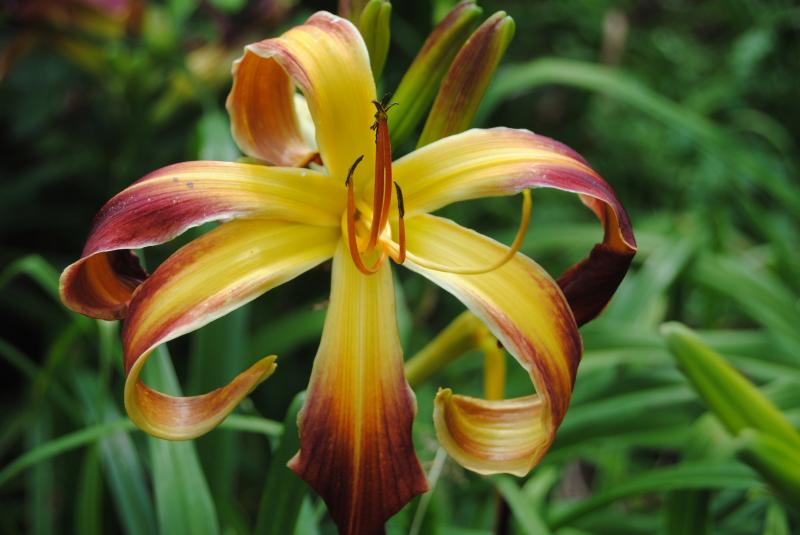 Hier blüht erst eine ganz einfache H.fulva. Einige Sorten haben noch nicht mal Knospen. Und dabei bin ich gespannt wie ein Flitzebogen, wie die Farben mit den anderen Stauden schlussendlich kombiniert sind :-\