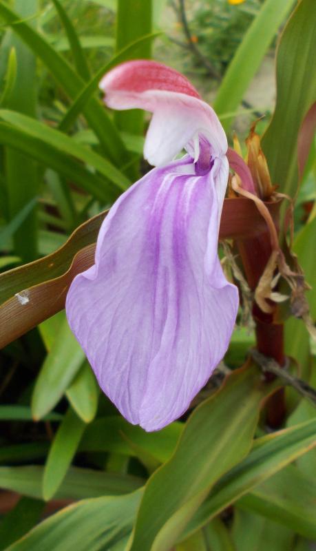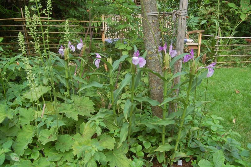 die ersten Roscoea zeigen sich...die dunkelblütigen sind entstanden im bestand der cremegelben R. cautleyoides 'Jeffry Thomas' + zeigen den habitus einer R. cautleyoides. die gelbe sieht aus wie eine R. humeana, ein zufallssämling im beet.