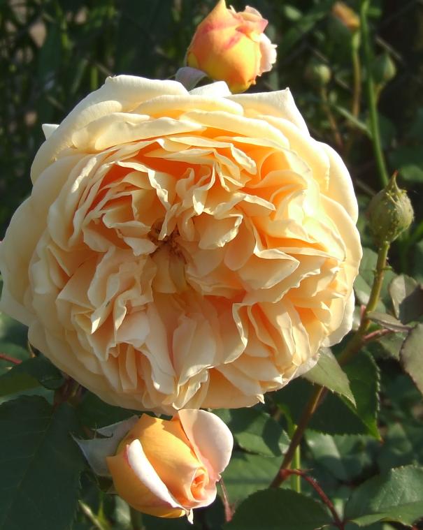 ) und die Rose ruckzuck ausgegraben. Einige andere Gewächse, so diverse Zwerg-Iris und die abgestochene Wurzel von einer Pfingstrose wurden uns auch noch in die Hand gedrückt. Ich hätte der guten Frau am liebsten den ganzen Garten umgegraben und gerodet, hatte aber die Befürchtung, hier eine Situation auszunutzen.Die Rose hat es uns gedankt. Sie ist ein inzwischen über 2 m hoher Strauch. Sie blüht zwar nur einmal, dafür aber mit exquisiten Blüten, die auch noch herrlich duften.