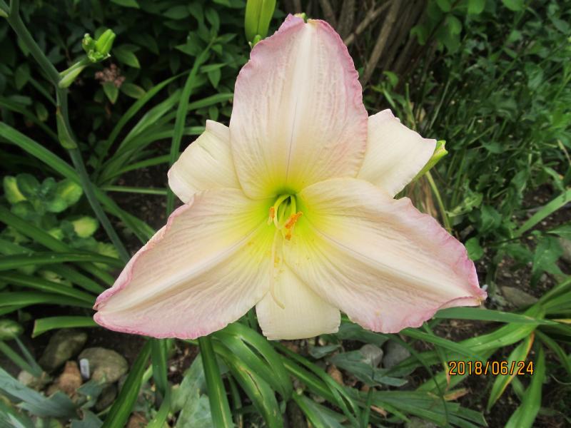Heavenly Angel Ice hat sich einen miesen Tag für die erste Blüte ausgesucht - trotzdem ist sie recht hübsch gelungen. Heuer ist er anscheinend beleidigt, weil es so viel geregnet hat - die Stängelhöhe ist um ein Drittel geringer als üblich.
