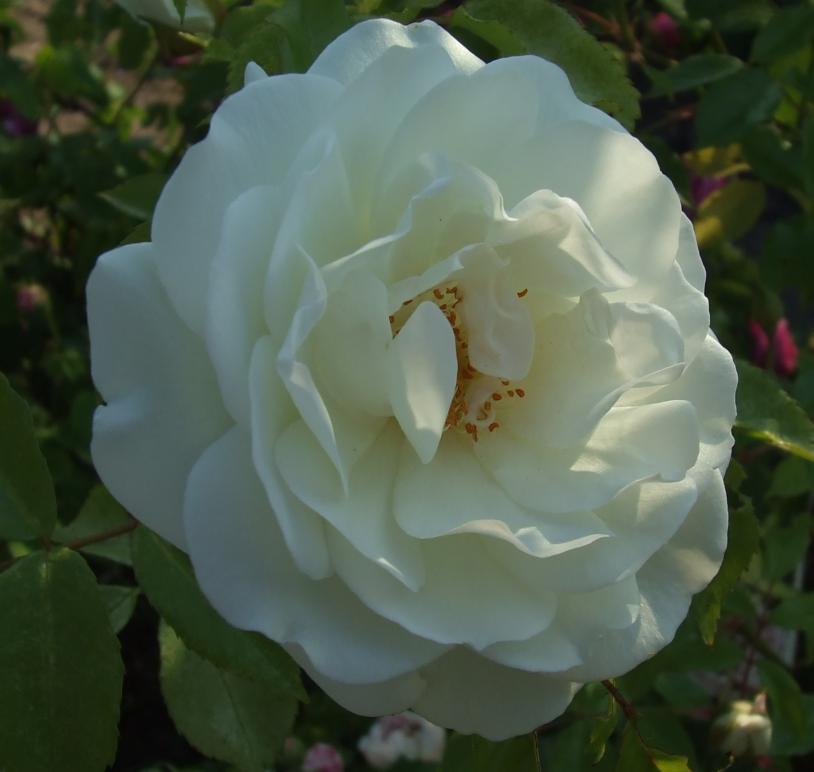) und die Rose ruckzuck ausgegraben. Einige andere Gewächse, so diverse Zwerg-Iris und die abgestochene Wurzel von einer Pfingstrose wurden uns auch noch in die Hand gedrückt. Ich hätte der guten Frau am liebsten den ganzen Garten umgegraben und gerodet, hatte aber die Befürchtung, hier eine Situation auszunutzen.Die Rose hat es uns gedankt. Sie ist ein inzwischen über 2 m hoher Strauch. Sie blüht zwar nur einmal, dafür aber mit exquisiten Blüten, die auch noch herrlich duften.